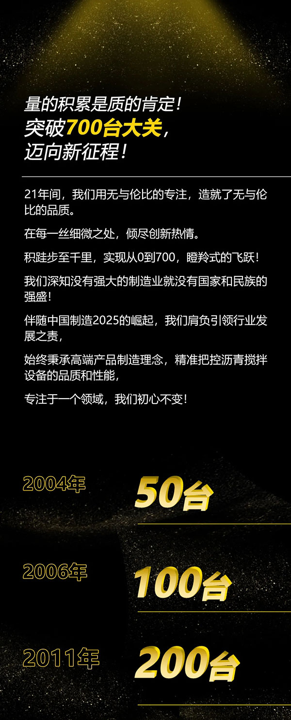 德基机械生产的沥青混合料搅拌设备,包括用于高速公路建设的4000型、5000型大型沥青混合料搅拌设备;用于市政建设、中等规模公路建设和维护的3000型沥青混合料搅拌设备;以及用于高等级公路养护和小型工程的1500型、2000型沥青混合料搅拌设备。在各个规格等级的沥青混合料搅拌设备中,包括有常规设备、再生设备、集装箱模块式设备、移动式设备、整体式再生设备以及最新研发成功和上市的环保式设备。