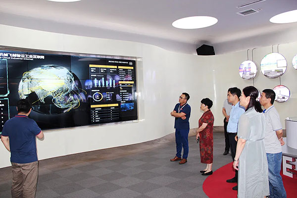 座谈结束后,学院领导们先后参观了德基机械展厅,亲身体验了德基机械沥拌站VR交互,了解了德基机械自主研发的飞越智云远程服务系统,并到车间进行了实地考察。