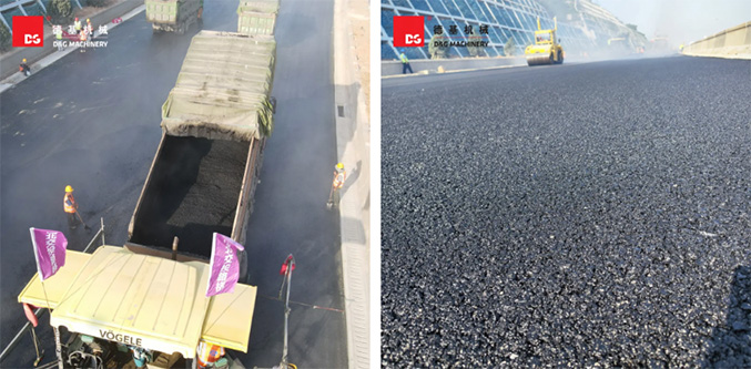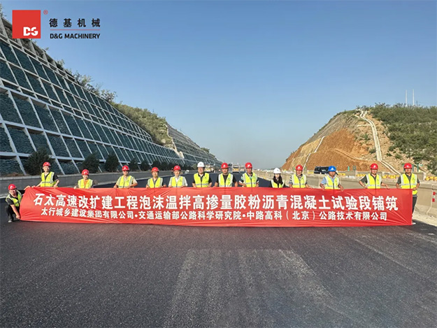 石太高速公路(石家庄—太原)作为华北地区重要交通干线,改扩建工程对材料性能与环保要求极高。该项目生产的温拌高掺量胶粉沥青混合料,用于路面中上面层摊铺,德基机械的发泡温拌装置展现出了多重优势:
