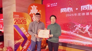 在晚宴的收官环节,蔡群力董事长为服务满十年及以上员工颁发了长期服务奖,感谢他们与公司风雨同舟、携手共进。获奖代表纷纷表示,将继续扎根岗位、持续奉献,与德基机械共同成长。