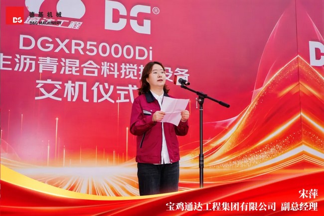 在交机仪式现场,宝鸡通达工程集团副总经理宋萍与德基机械副总裁刘金枝分别致辞。客户在发言中表示:“德基机械DGXR5000Di再生沥青混合料搅拌设备设计理念先进,低碳环保,将为宝鸡当地基础设施建设提供高品质的沥青混合料。德基机械团队充分利用场地,合理布局,高效完成设备安装与调试,展现了极高的专业素养与责任感。从前期规划到后期培训,每一个环节德基机械都做到了完美服务。”