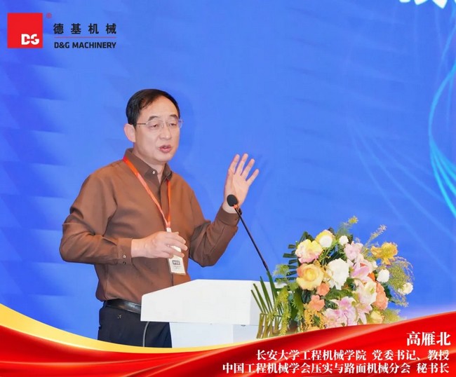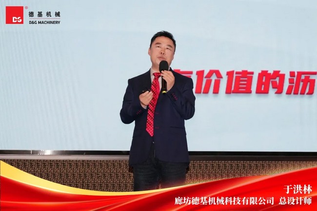 德基机械总设计师于洪林向参会嘉宾介绍了《技术赋能沥拌生产,创新铸就行业价值》的内容,深入解析如何通过技术创新破解行业痛点,实现降本增效、品质提升与环保达标,为沥青拌和行业高质量发展注入强劲动力。