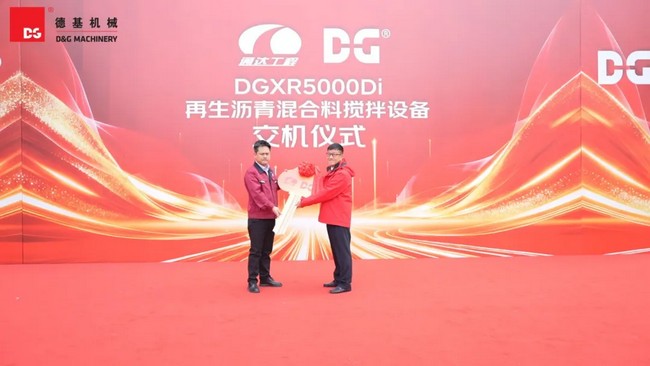 在全场嘉宾的瞩目与掌声中,德基机械正式向宝鸡通达工程集团交付了一套具有里程碑意义的设备——DGXR5000Di再生沥青混合料搅拌设备及其配套的RCS120Gi再生料破碎筛分设备,该设备以“再生一体化、高效智能、超低排放”为核心优势,标志着双方合作迈入新阶段。