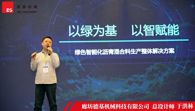 作为沥青搅拌及再生技术领域的领先企业,德基机械受邀出席本次盛会,与行业同仁共话“双碳”背景下道路养护的转型升级之路。在大会技术交流环节,德基机械总设计师于洪林发表了主题为《低碳智能沥青再生整体解决方案》的演讲,以深厚的行业洞察与前沿的技术理念,赢得了现场与会嘉宾的高度关注与广泛共鸣。